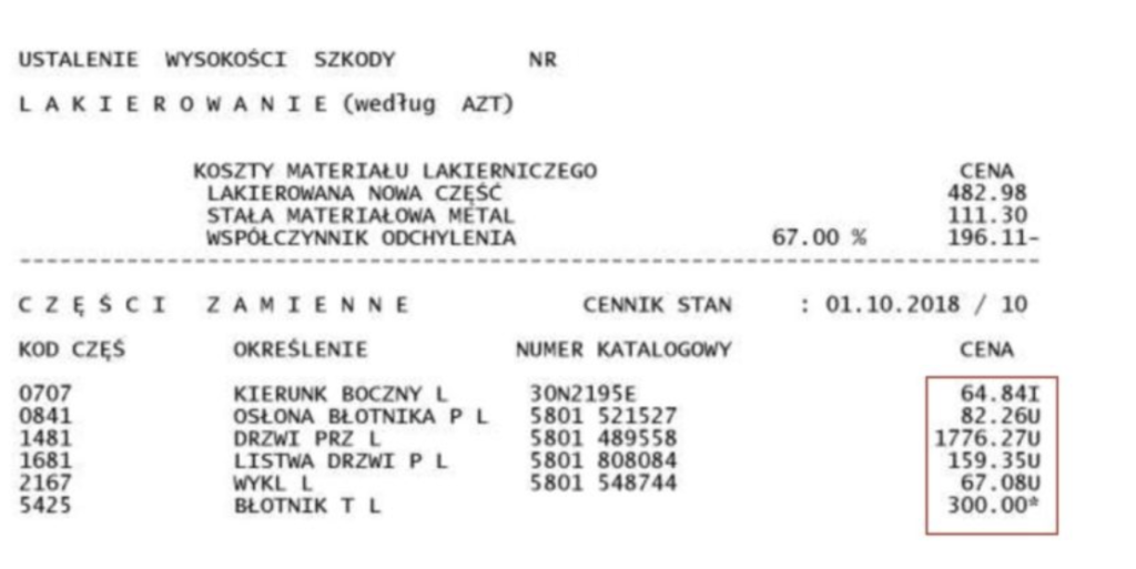 Jeżeli ubezpieczyciel przesłał Ci tylko fragment kosztorysu lub nie zawarł w nim oznaczeń części: